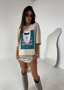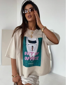 Klasyczna koszulka damska z nadrukiem. Luźny, oversize’owy krój zapewnia swobodę ruchów, a miękki materiał sprawia, że chcesz ją nosić codziennie. Idealna do denimowych szortów, sportowych legginsów czy klasycznych spodni – stylizacja gotowa w kilka sekund.